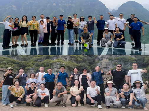 团建首日, 阳光明媚, 员工们满怀期待地踏入十渡天河谷风景区。 玻璃栈道上, 大家步伐谨慎, 彼此相互鼓励, 笑声与惊呼声交织, 展现出挑战自我的勇气; 高空瀑布下, 磅礴的水流声震撼着每一个人, 大家纷纷合影留念, 记录这壮观的一刻; 高山漂流中, 橡皮艇在湍急的水流中飞驰而下, 员工们或兴奋尖叫, 或相互协作把控方向, 尽情享受速度与激情带来的乐趣; 观光魔毯上, 大家轻松欣赏沿途风景, 交流着对景区的赞美; 十二生肖泼水乐园里, 更是一片欢乐的海洋, 现场气氛热烈, 大家仿佛回到了无忧无虑的童年时光, 每个瞬间都充满了激情与活力, 团队的凝聚力在这一刻得到了极大的提升。